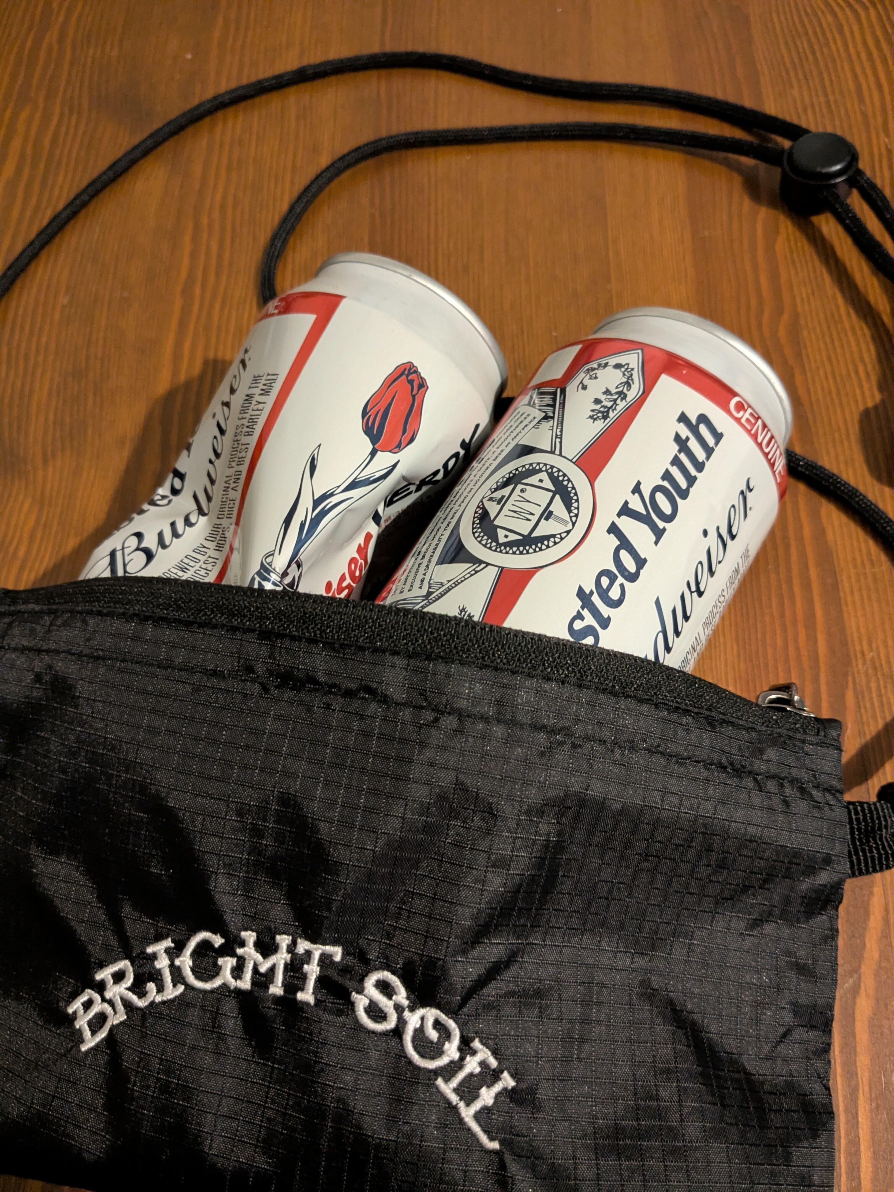 ライブ、フェスにもぴったりのサコッシュです。お財布、スマホ、鍵、小物をしっかり収納できます。そして、350ml缶ビールなら1本も入っちゃいます!